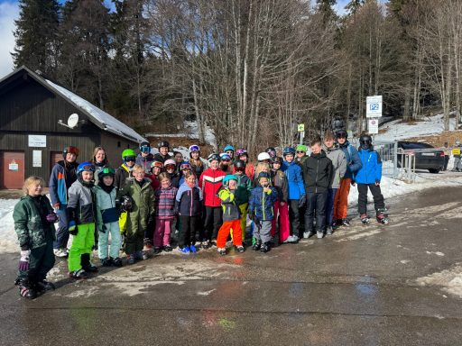 Die Sonne schien am Samstagmorgen durch die wenigen Wolken über die schneereichen Gipfel und die bestens gelaunten 51 Ski- und Snowboarder waren kaum zu bremsen. Noch schnell ein Gruppenfoto vor der Kaiser-Bahn, bevor in verschiedenen Gruppen die Pisten erobert wurden.