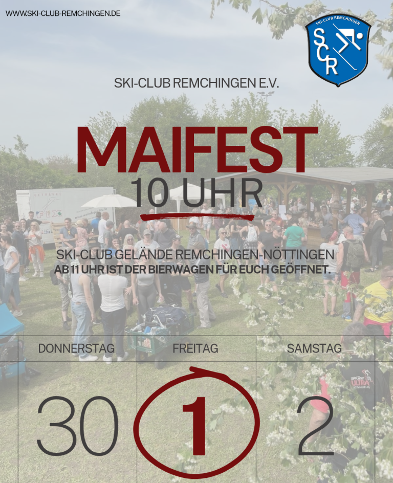 Traditionell findet unser Maifest auf dem Ski-Club Gelände in Remchingen-Nöttingen statt. Los geht es ab 10:00 Uhr! Der Bierwagen ist ab 11:00 Uhr für euch geöffnet!